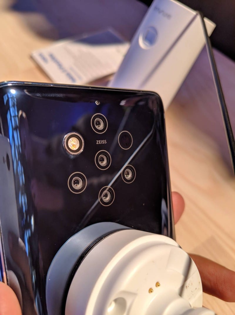 The USP of the device is no doubt, the rear camera. The Nokia 9 packs in a Penta(5) camera set up at the rear with dual LED flash and ZEISS optics. All the five cameras sport a 12MP sensor with three of them being a Monochrome and two of them being RGB sensors. All five 12MP sensors come with an f/1.8 aperture and the Monochrome sensor can capture 2.9 times more light and the RGB sensors can capture 10 times more light compared to a single RGB sensor. Overall the camera can produce 1200 layer of depth data. The camera UI also packs in a native Black & White mode, RAW image capture, Google Photos integration to adjust the depth of background and foreground.