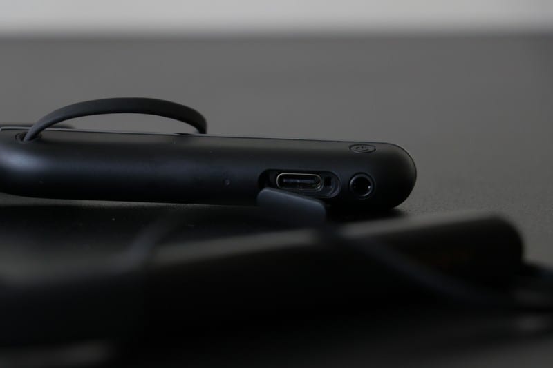 The earphones are well carved out, with a strong yet flexible neckband. Just like with other neckband style earphones, the ends of the module hold the battery, and the simplified controls take the hassle away. There is just one button on the neckband for power, along with a USB Type-C port (covered by a flap) and a 3.5mm socket to connect a stereo cable for wired listening.