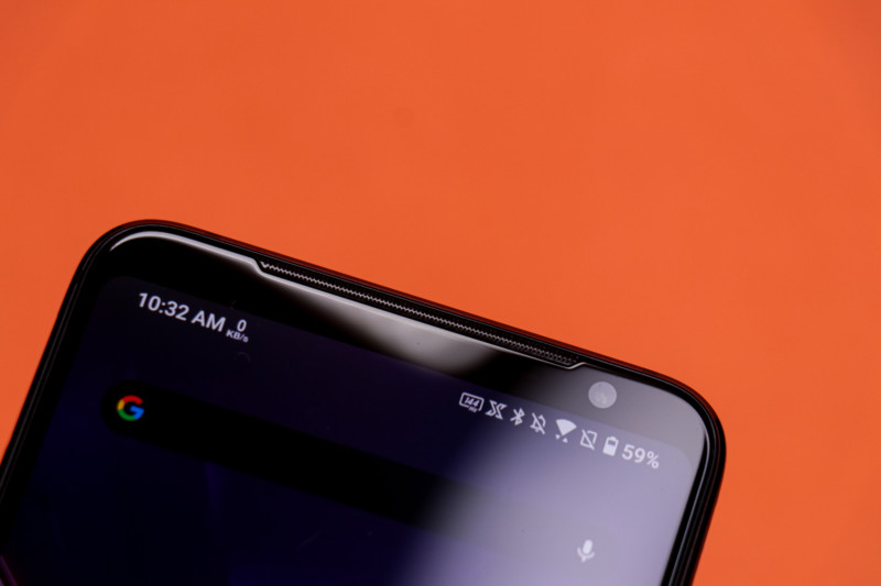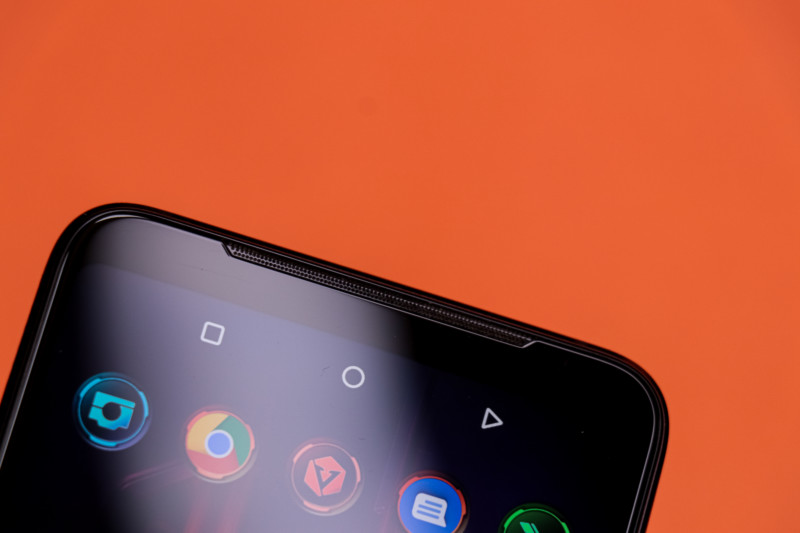 Moving towards the front, it sports small bezels like ROG Phone 2 does; No notch, punch hole, and curved display. The top bezel houses an RGB light, front camera, and dual front-firing speakers on top and bottom. These speakers are so loud, you don’t sense distortion at higher volumes. They’re loud and provide better bass response than most of the smartphones out there.