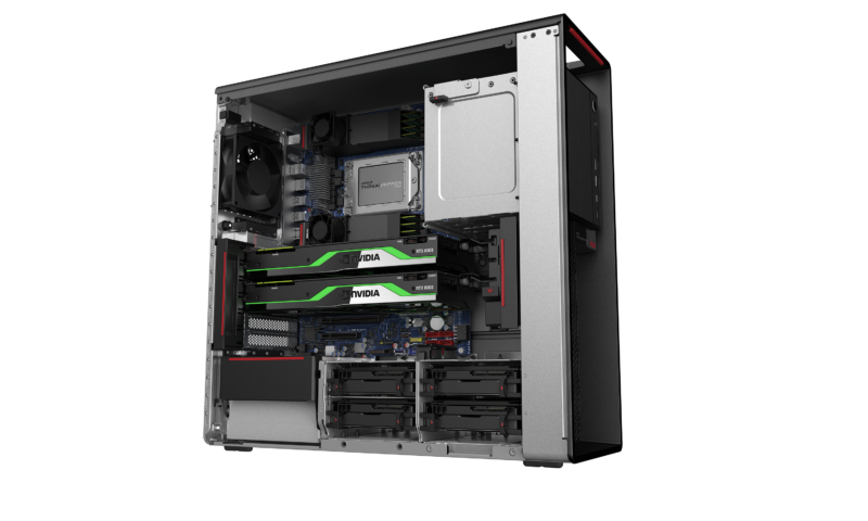 The new ThinkPad P620 supports up to 64 cores with clock speeds boosting up to 4.0GHz, with 128 lanes of PCIe 4.0 bandwidth, and 8-channel memory support. The P620 supports up to Up to 2 NVIDIA Quadro RTX 8000 Total Memory, Up to 512GB DDR4, 3200MHz.