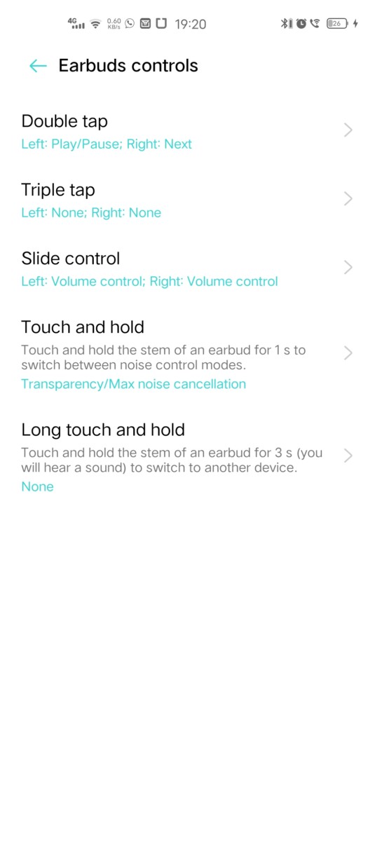 The touch gestures are enjoyable, allowing you gestures like double-tap to change tracks or Play/pause music, Triple tap to activate voice assistant, Slide the control to adjust the volume or to switch tracks, touch and hold for 1 second for ANC and 3 seconds for to switch to another device, can be useful while switching between laptop and smartphone. However, we wished that these had a single tap gesture also to play/pause music. The gestures can be customized with the HeyMelody App itself. Though, the independence of customizing gestures in the app is limited as you can’t assign any favourable task on these gestures. The touch gestures work well and accurately almost every time.