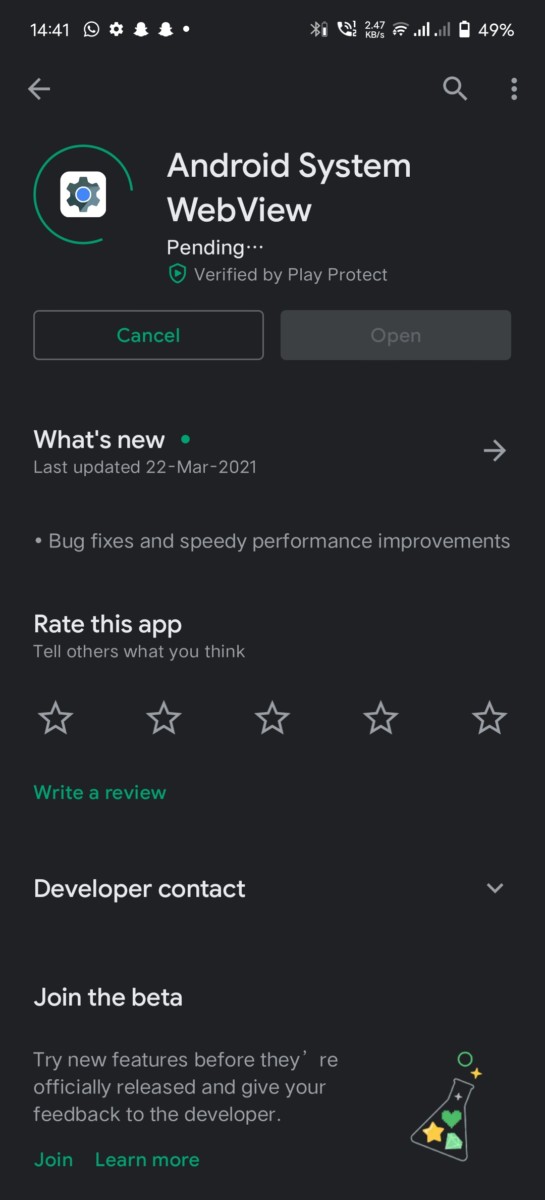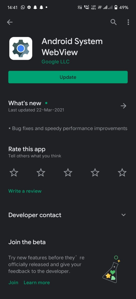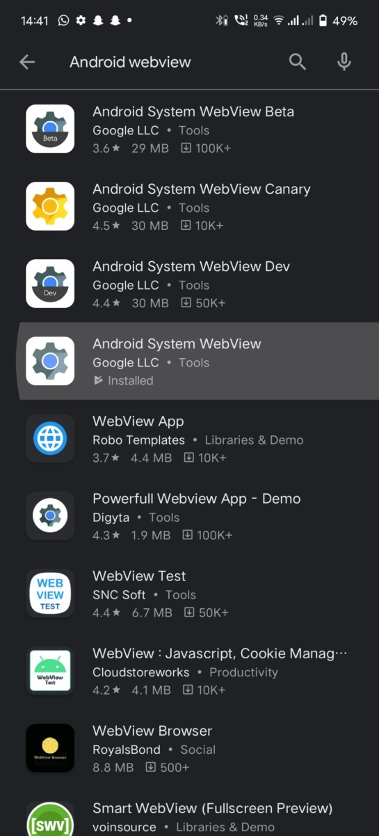 - Search for Android System Webview app by Google