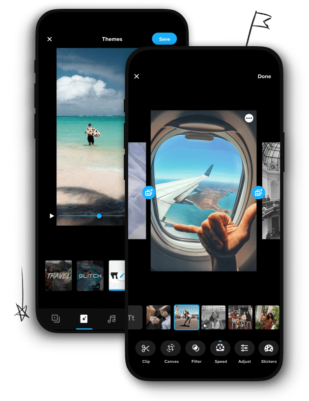 - Premium Themes: Choose from a growing list of sophisticated video edit themes, making it easy to give your videos a particular style or energy