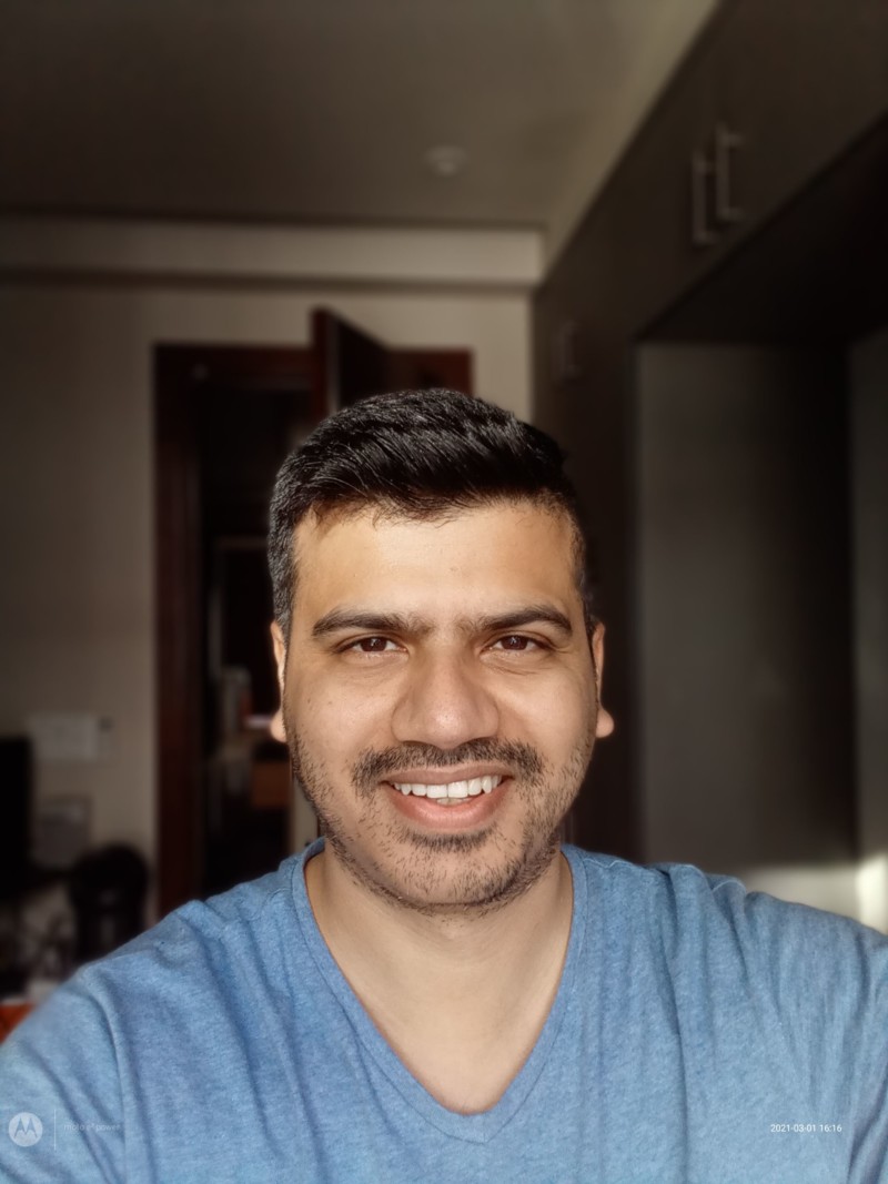 The 5MP Selfie Camera on the front works fine if there is adequate light. But it struggles while maintaining the exposure level which blows the details off and makes the image grainy and overexposed when you try clicking against the light. That said, it has an acceptable front camera for your video calls and outdoor selfies. It can also shoot 1080p 30fps videos from both the front and rear camera.
