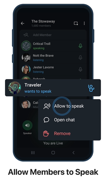 Admins can record the live voice chat sessions, and the audio file will be automatically saved in their ‘Saved Messages’ window right after the session would end. Now that recording can be provided to other members who may have missed the live session. - Raise Hands-