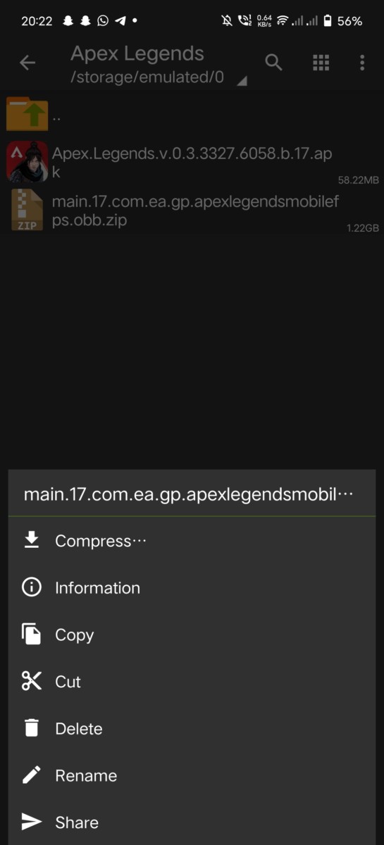 - Copy/Cut the OBB file and paste it in the Android/OBB/com.ea.gp.apexlegendsmobilefps