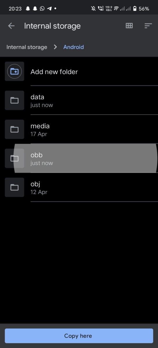 - After this is done, you have to paste the OBB file into your android directory.