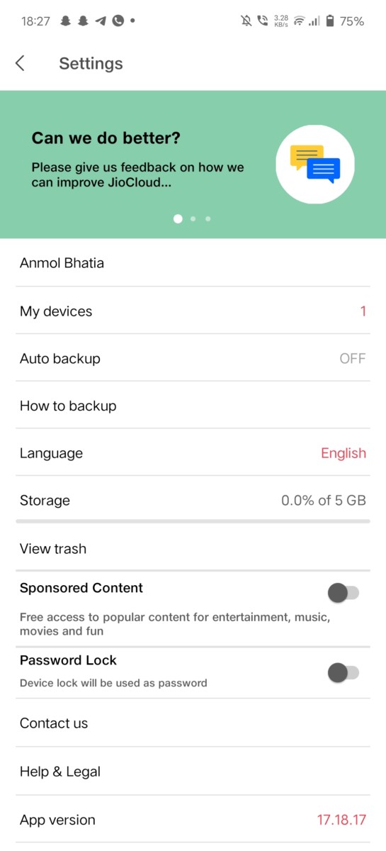 JioCloud is a cloud service by Jio Platform Limited which bundles 5GB of cloud space as soon as you sign up into the app with your existing Jio Number or E-mail address. This app provides you with up to 50GB of free online storage through a referral program. It also holds the same features as others which include remote access, easy sharing of data through links and automatic backing up files. The only fact that makes this app awful is to increase storage through a referral system which may not be liked by every user.
