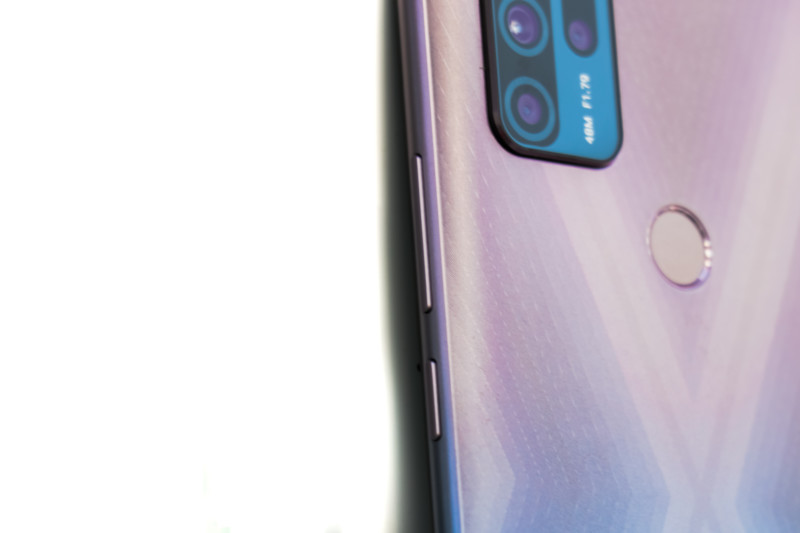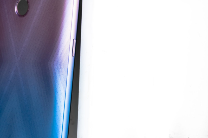 The Micromax In 1 holds a high-quality polycarbonate with a flashy gradient-Esque rear panel, and has an X shaped pattern that shimmers when light reflects on it. It also has an oleophobic coating which resists smudges and fingerprint traces. On the bottom, there is a subtle ‘in’ branding which reminds me of the ‘Linkedin’ logo and a triple camera setup on the top left side. Meanwhile, every brand is now shifting its fingerprint scanner built into the power button, Micromax still has it on its rear and it performs mediocre. The device comes in two colour variants:- Blue and Purple. In our review period of this device, we got the Purple variant.