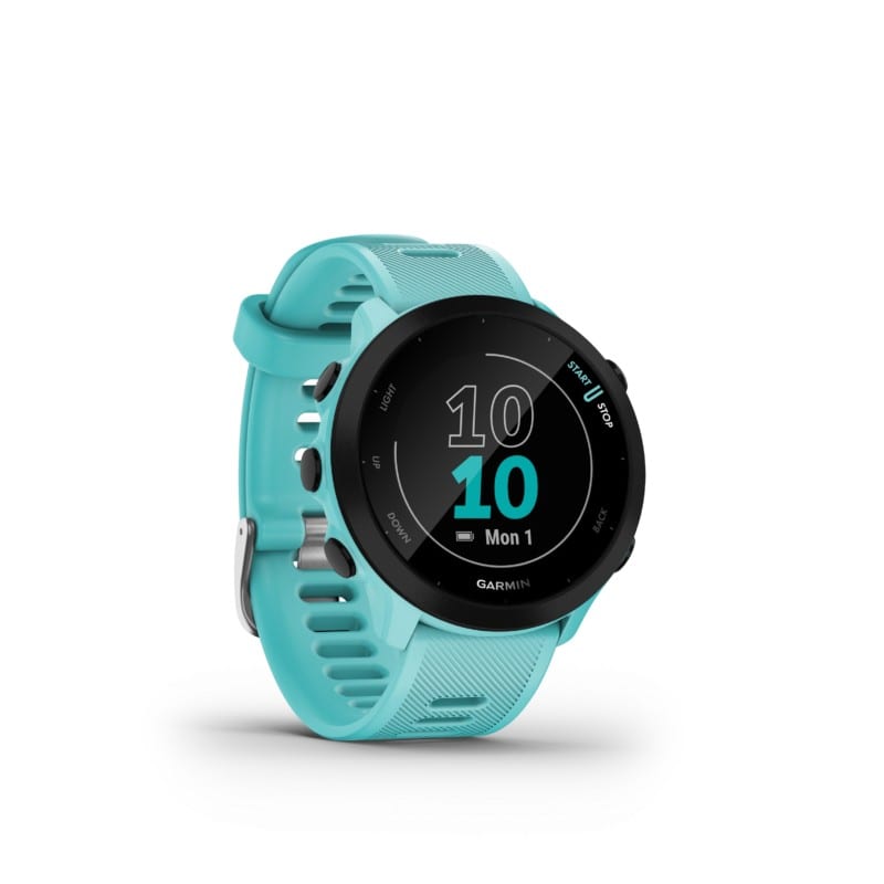There is Built-in assistance and incident detection that let users manually or automatically send a message with their real-time location to emergency contacts. The Forerunner 55 will also automatically upload activities to Garmin Connect and allow athletes to download custom watch faces, data fields and apps from the Connect IQ™ Store. It is available in 3 colours; Black, Aqua and Monterra Grey