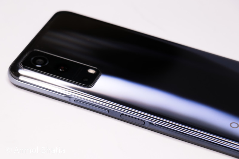 The iQoo Z3 is available in 2 colour options:- Cyber Blue and Ace Black. We’re rocking the Ace Black for our review period. Now, it boils down to personal preference. If you like the flashy colour design, Cyber Blue is the colour to go for and If you like a subtle reflective look then Ace Black is the colour you opt for. Both the colourways are easily prone to smudges and scratches.