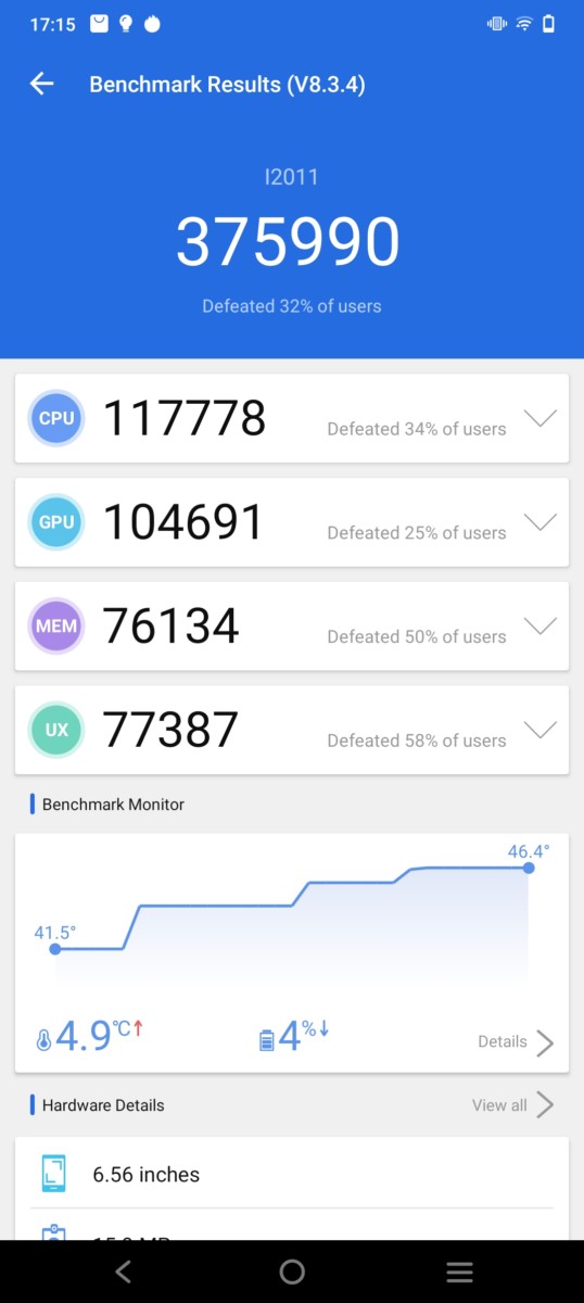 We played many games on it like Asphalt 9, PUBG Mobile, Alto Adventure and Call of Duty Mobile and more. The FPS was stable on High Settings on Call of Duty and PUBG Mobile which pulls 48-59 FPS offering smooth gameplay. Other games like Asphalt 9 and others run flawlessly on this device. The device comes with the license of Widevine L1 which makes sure you enjoy your binge session in higher quality. In the CPU throttling test, the CPU throttled to 87% of its max performance. As far as benchmarks scores are concerned, iQoo Z3 scored 375990 in the Antutu Benchmark. In Geekbench, it scored 722 in Single-core score and 2024 in Multi-core score.