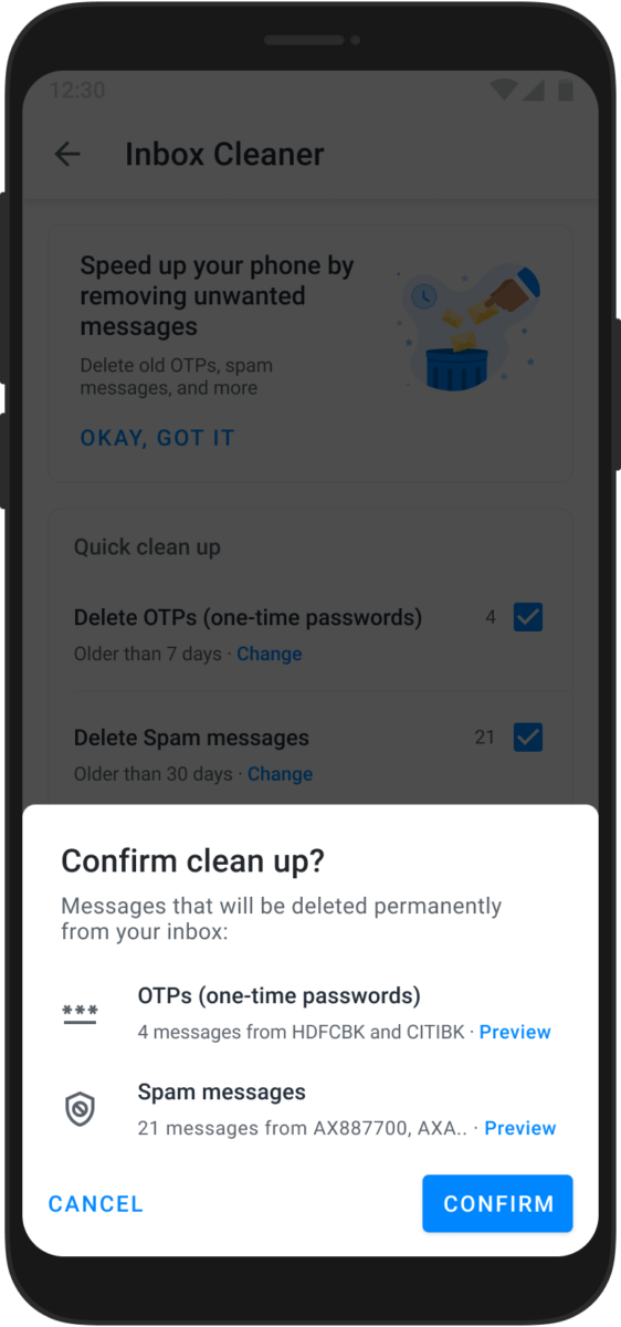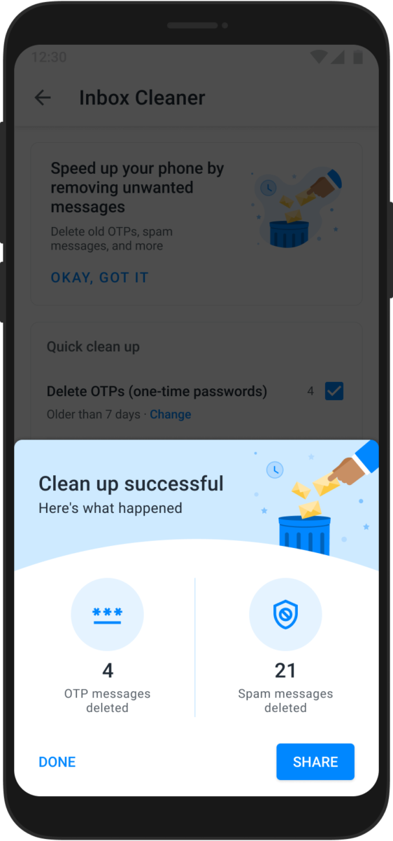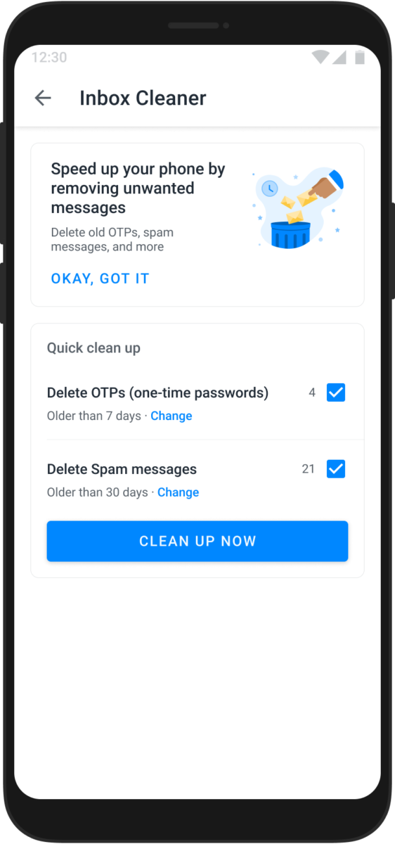 Inbox Cleaner – Inbox Cleaner helps users clear out all those old, unwanted messages in just a few seconds. A quick tap on Inbox Cleaner from the menu will show you how many old OTPs and spam SMSs you have accumulated and another tap on the ‘clean up’ button will quickly and effectively remove old SMSs without affecting your important data. This feature is designed to run in the background, allowing users to continue working on other tasks within Truecaller or any other app on the device while Inbox Cleaner works its magic.