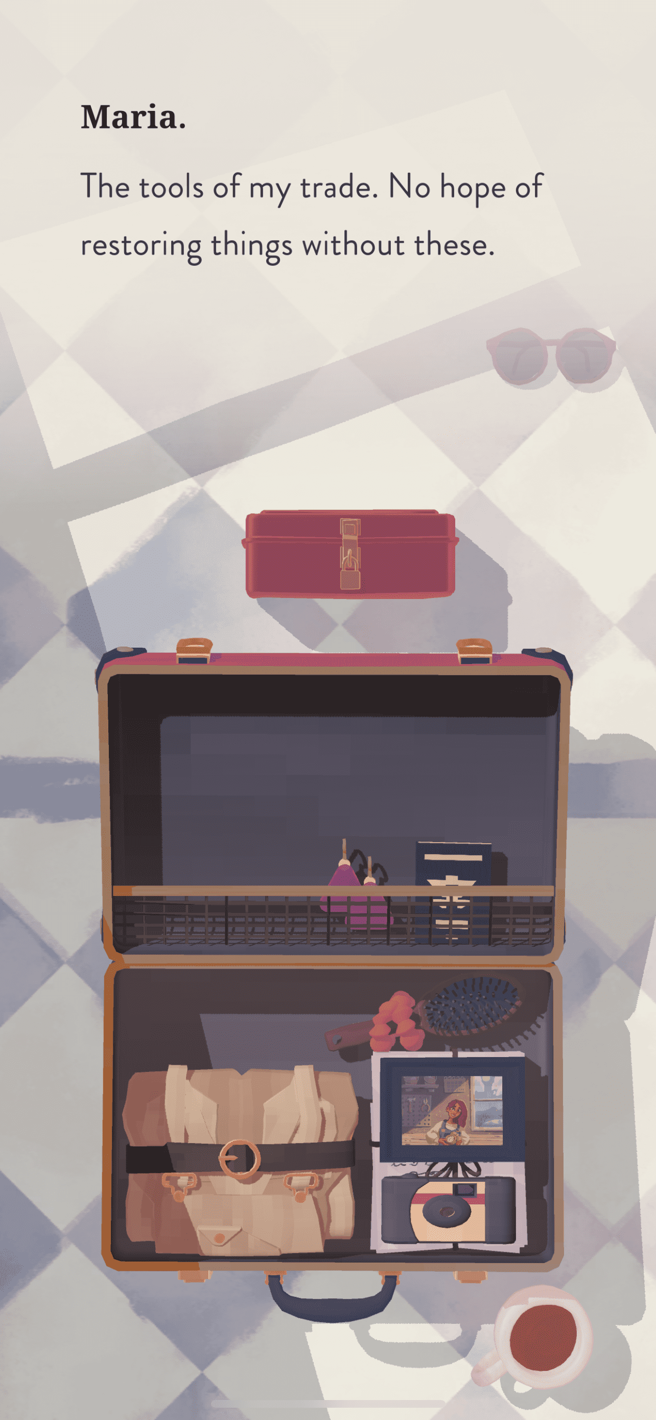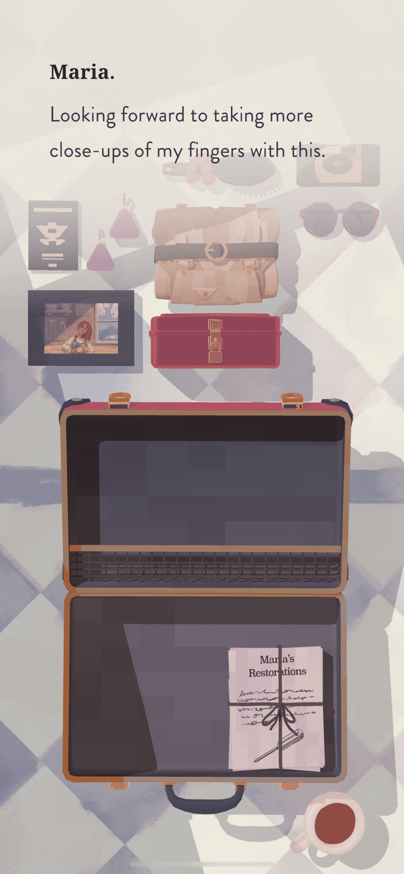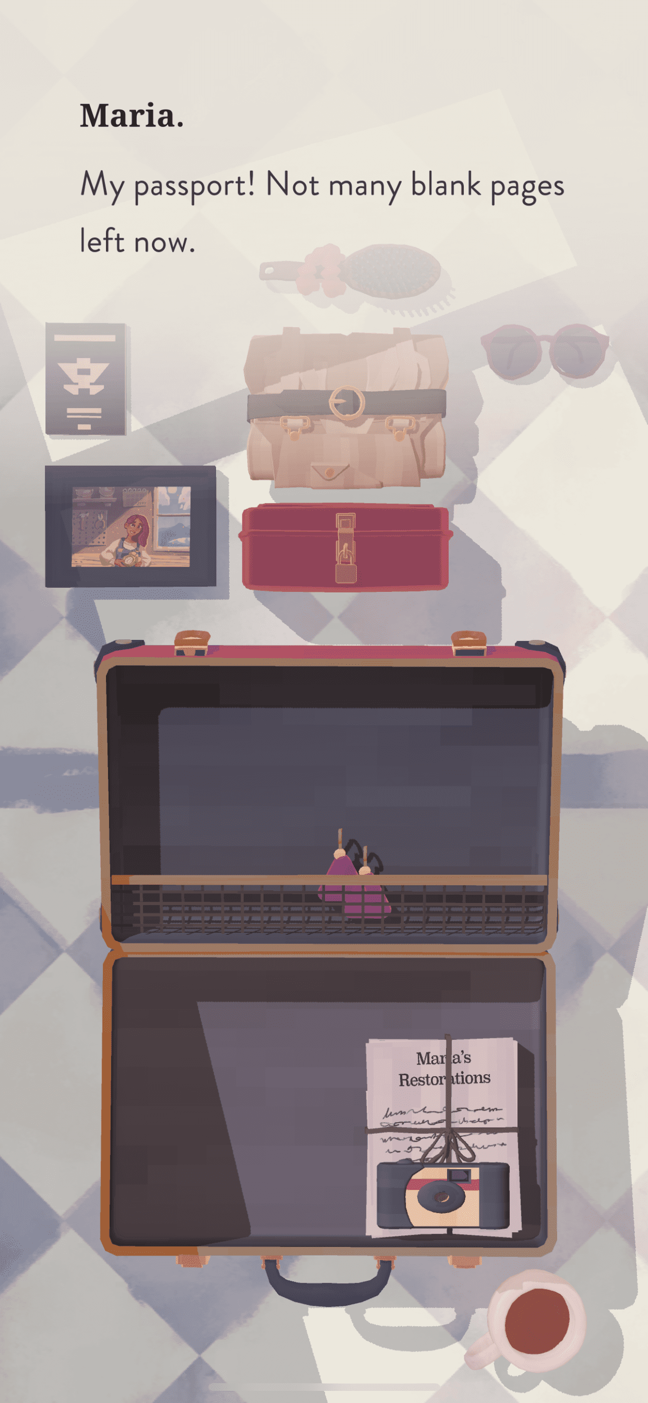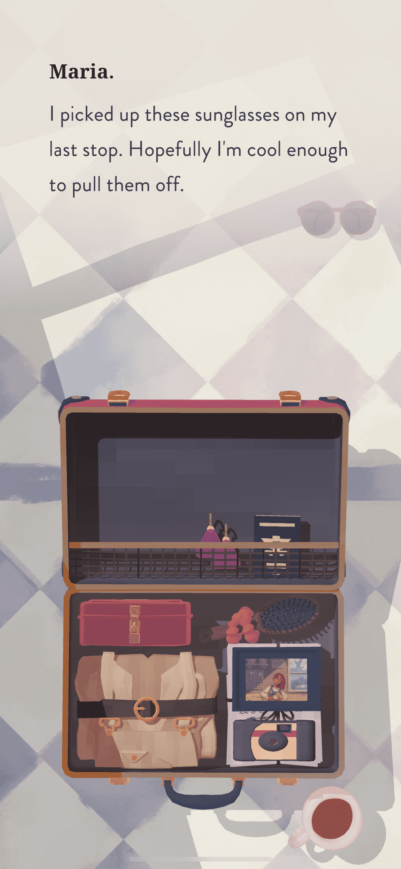 When Maria starts to unpack her suitcase, with each item she takes out of the luggage, she shares a personal message and her voice is so soothing matched with this zen-like background score. You have to play it to believe how realistic she sounds and the gameplay feels.