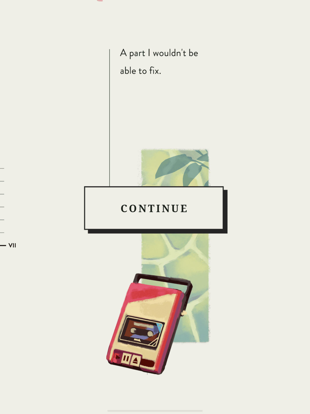 In the first frame, you get – A cassette deck, two batteries, a screwdriver, a cassette, a pencil and an empty cup. You can pick any tool and start playing around, but I’d recommend starting with the cassette and pencil to fix the tape first. Once you complete that, pick up the cassette deck, rotate it, unscrew it and change the batteries. Each action, needs physical involvement, to pick, rotate the screws, keeping and picking the screws from the cup, taking out each battery and placing in the new ones. It is really intricate but not complex at the same time. More of an artistic way of fixing things and that’s the ethos of the game.