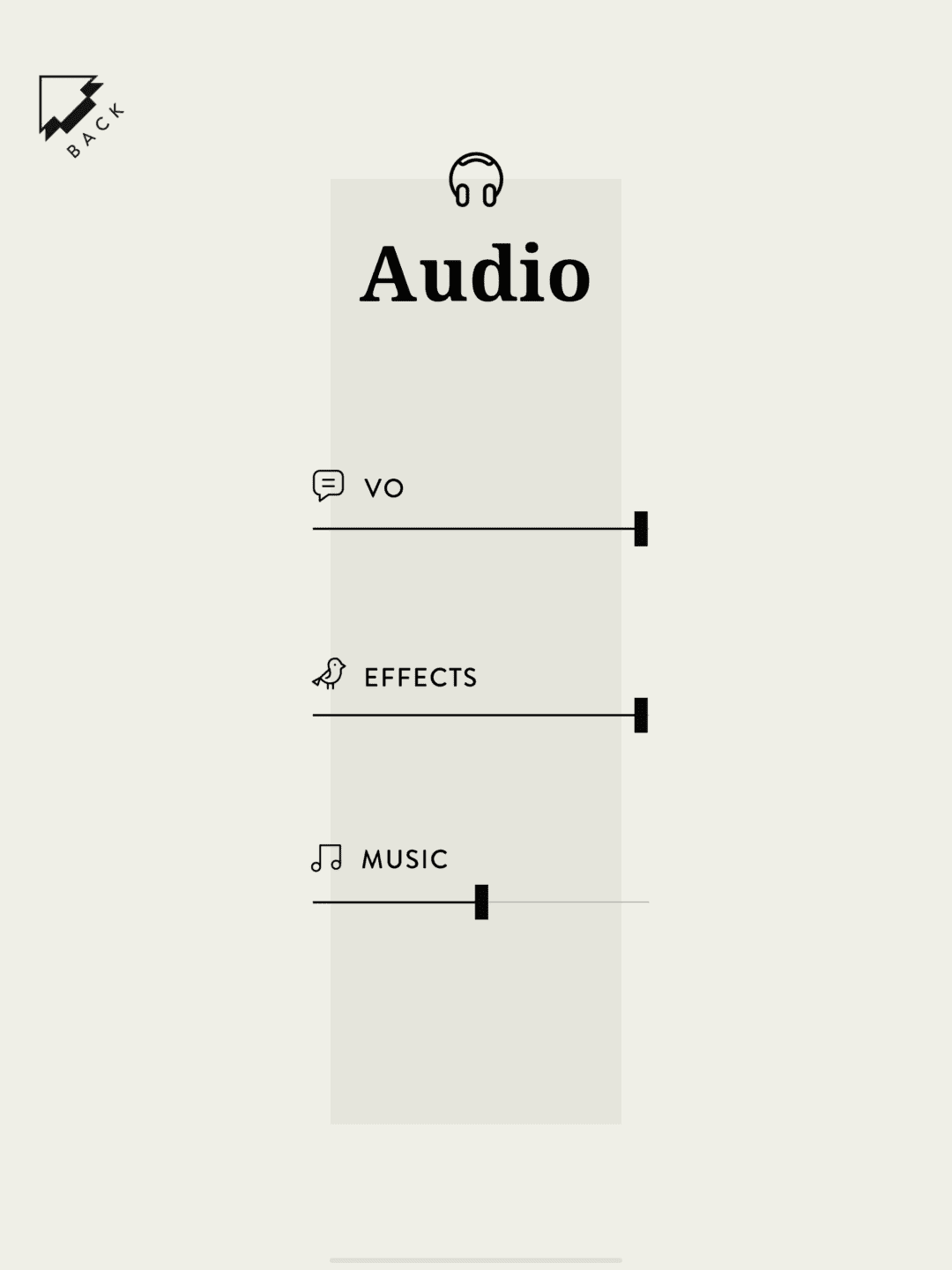 Another interesting design choice was to include a cup of coffee at the bottom of the screen at each level. Tap on it to access the Audio settings or go back to the Main Menu at any point in time during the game. In terms of Audio, you can tweak the VO (Voiceover), Effects and Music.