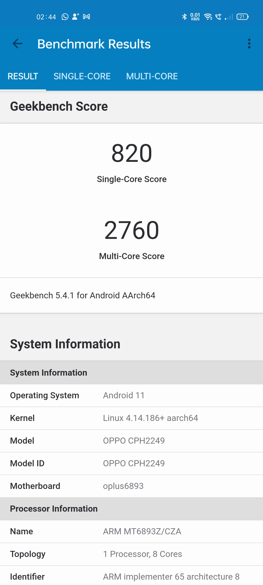 | Skin | ColorOS 11 |