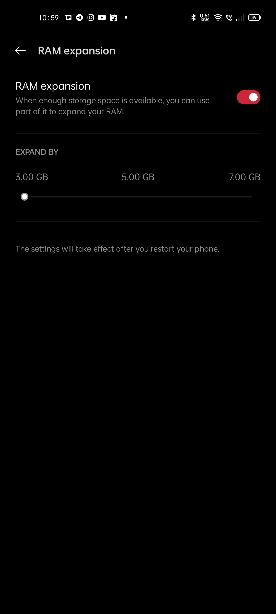 This chipset is based on a 6nm processor and offers a clock speed of up to 3 GHz with the future-proofing of 5G connectivity.With two RAM configurations:- 8GB and 12GB RAM and two storage configurations:- 128GB and 256GB ROM.After iQoo and Vivo came up with ‘Extended RAM’. Realme was also following up the same with its latest offering with the name of ‘Dynamic RAM expansion’. Oppo is also following up the same culture which is known as ‘RAM expansion’ which allocates internal storage that can be used as Virtual RAM. As our review device has 12GB RAM, it can get up to 7GB of more Virtual RAM which can be activated by restarting the device. This setting can be accessed by going onto Settings-About Phone-RAM. Additionally, the graphical duties are handled by Mali-G-77 MC9.