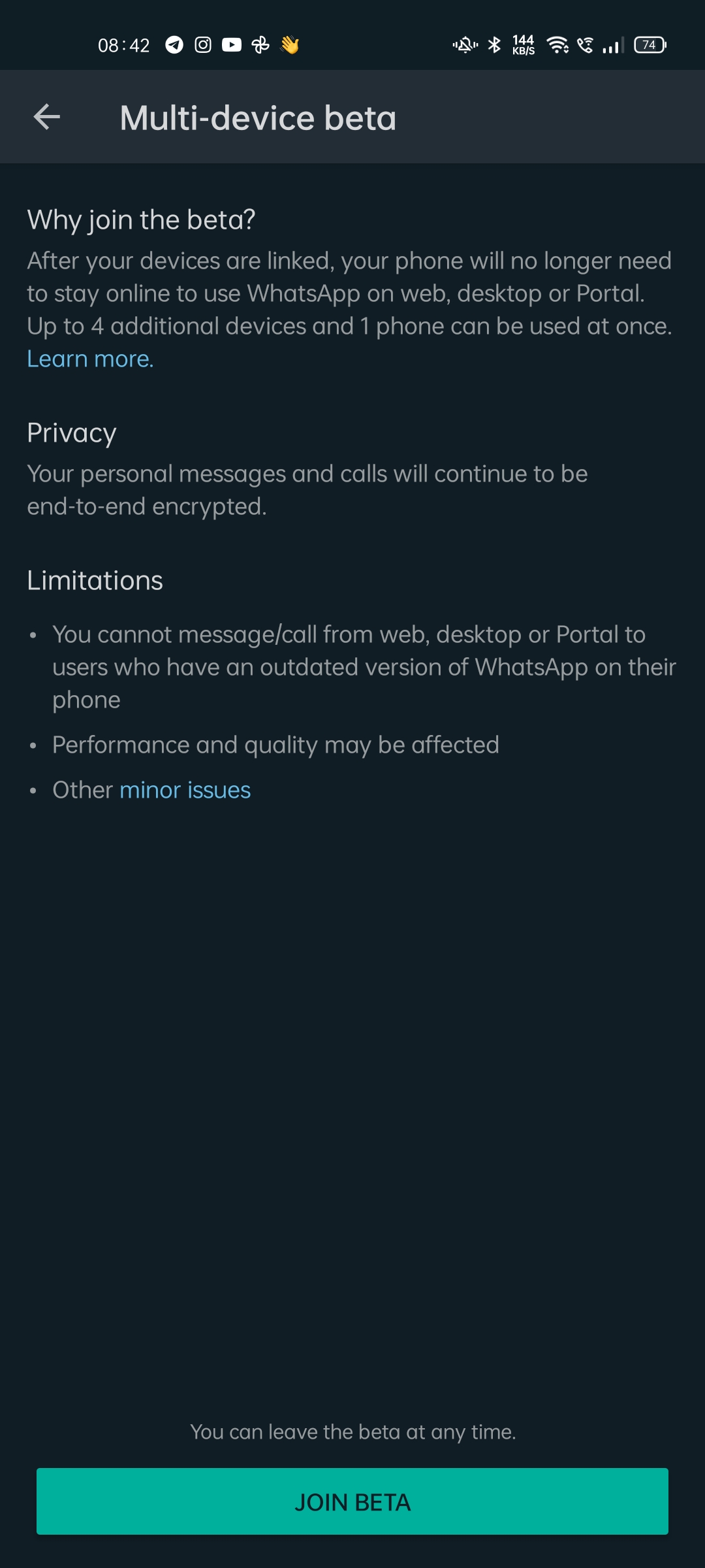 Now that you’re a WhatsApp Beta user, make sure to update the app to the latest beta version by going to the Play Store. If your app has been updated to the latest version, you should get an option to join the Multi-Device support Beta by going to the Linked devices section. Join the Beta, and the feature should work just fine without any sorts of issues.
