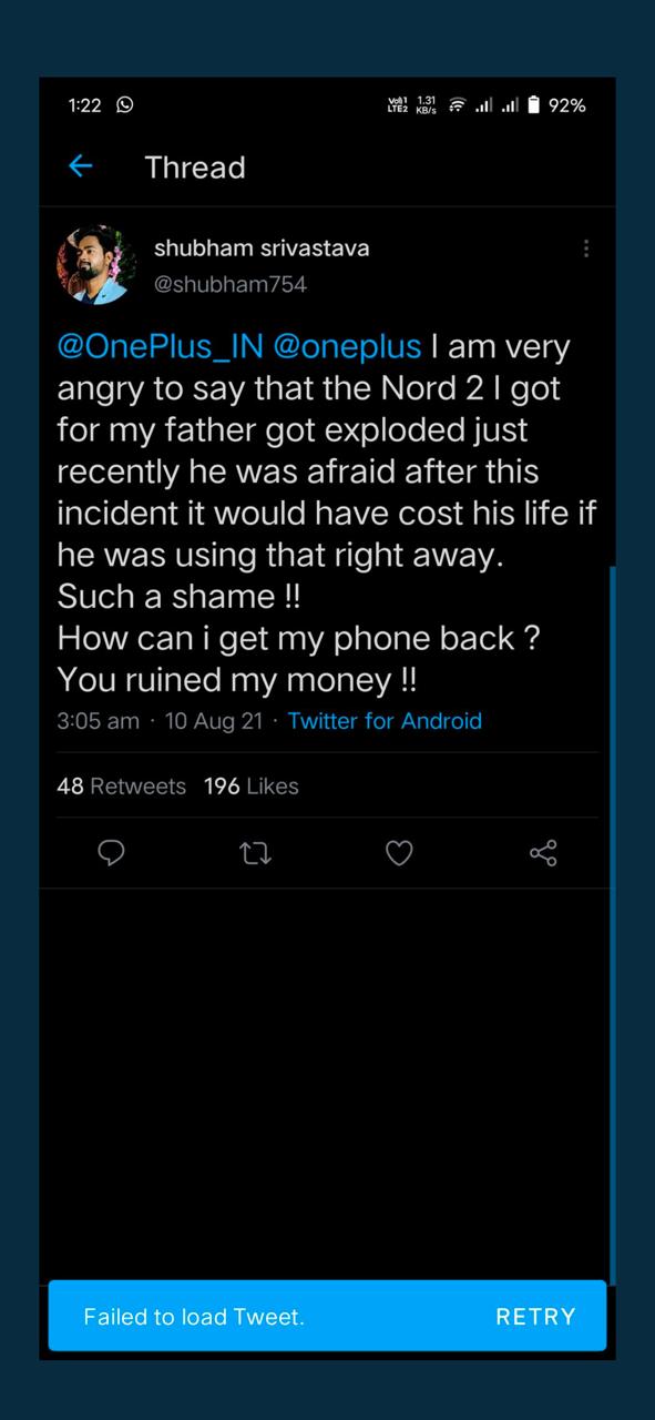 “Earlier today, we were notified on Twitter about an alleged blast case for the OnePlus Nord 2. We always take such claims very seriously and immediately look into each one to first verify the legitimacy of the claim. During our conversation with this individual, we were able to confirm that this alleged case was false and in no way involved any OnePlus product.