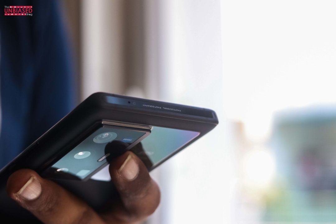 If you’re someone who appreciates Vivo devices for their implementation of sleek and lightweight smartphones, the Vivo X70 Pro Plus is a chunky device in every sense of the word with a considerable weight of 213 grams. It feels slightly tall and wide for in-hand operations. The curved display corners aid for better gripping to the device and doesn’t accidentally register palm touches. However, it feels way more ergonomic than Samsung Galaxy Note 20 Ultra and lighter than the Xiaomi Mi11 Ultra.