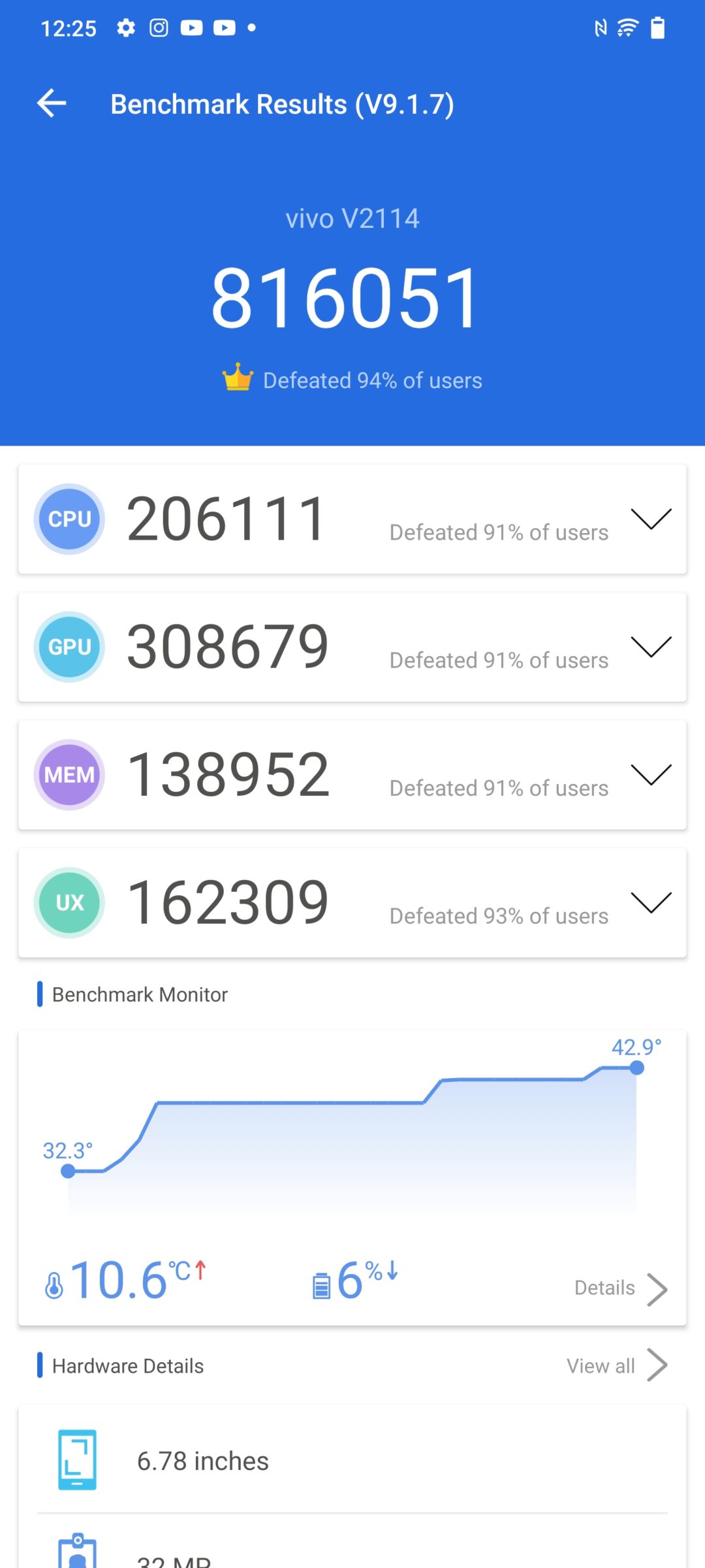 As far as benchmark scores are concerned, it scores 816051 in Antutu Benchmark, 1126 Single-Core, and 3301 Multi-core scores in Geekbench 5. During our CPU throttling test, the CPU throttled to 79% to its max performance. I had no troubles maxing out higher graphics and through multitasking, it’s a buttery smooth top-tier experience with zero stutters and lags. Playing some of the game titles like Asphalt 9, Battleground Mobile India, Call of Duty, and Genshin Impact, it manages to run these graphic-hungry games with ease. I’d also noticed that the Genshin Impact is smoother than I’ve experienced on any other flagship smartphones so far.