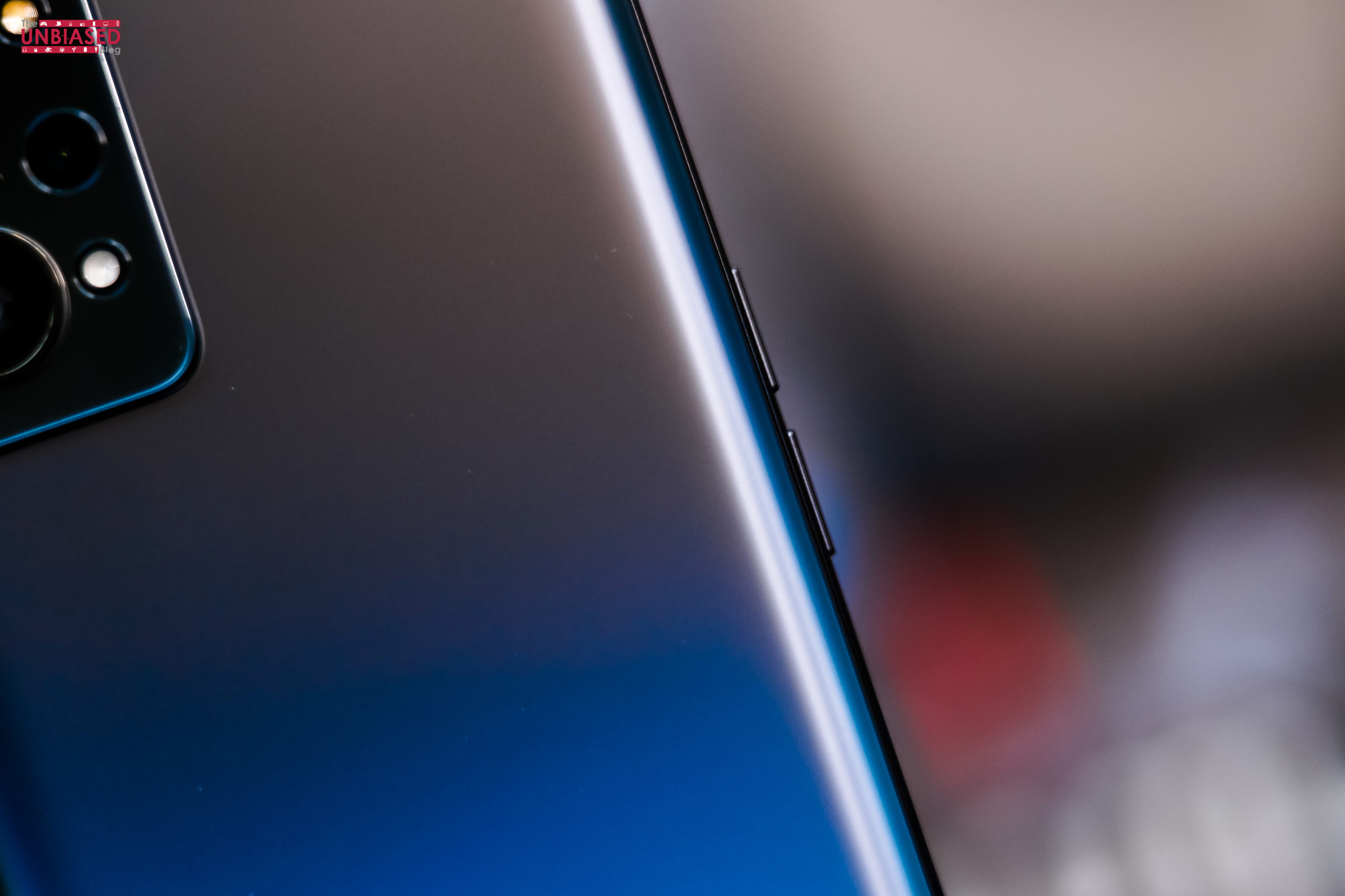 Realme has always been experimental with its design whether it’s a combination of vegan leather along with a strip of glass or a brief-case like design. The Realme GT Neo 2 introduced a new colourway i.e, Neo Green, which again counts in as the first smartphone with a neon colour which I’ve ever seen and also slaps a ‘DARE TO LEAP’ branding on a thinner strip placed vertically on its back along with a black opaque strip to its right. This design approach can be subjective from person to person and if you like flashy colours and are comfortable in flanking that tacky strip of branding, then this could be the choice for you. If not then, fortunately, it comes with two more reasonable colours; Neo Black and Neo Blue for a more subtle approach. We received its Neo Black colourway for conducting this review.