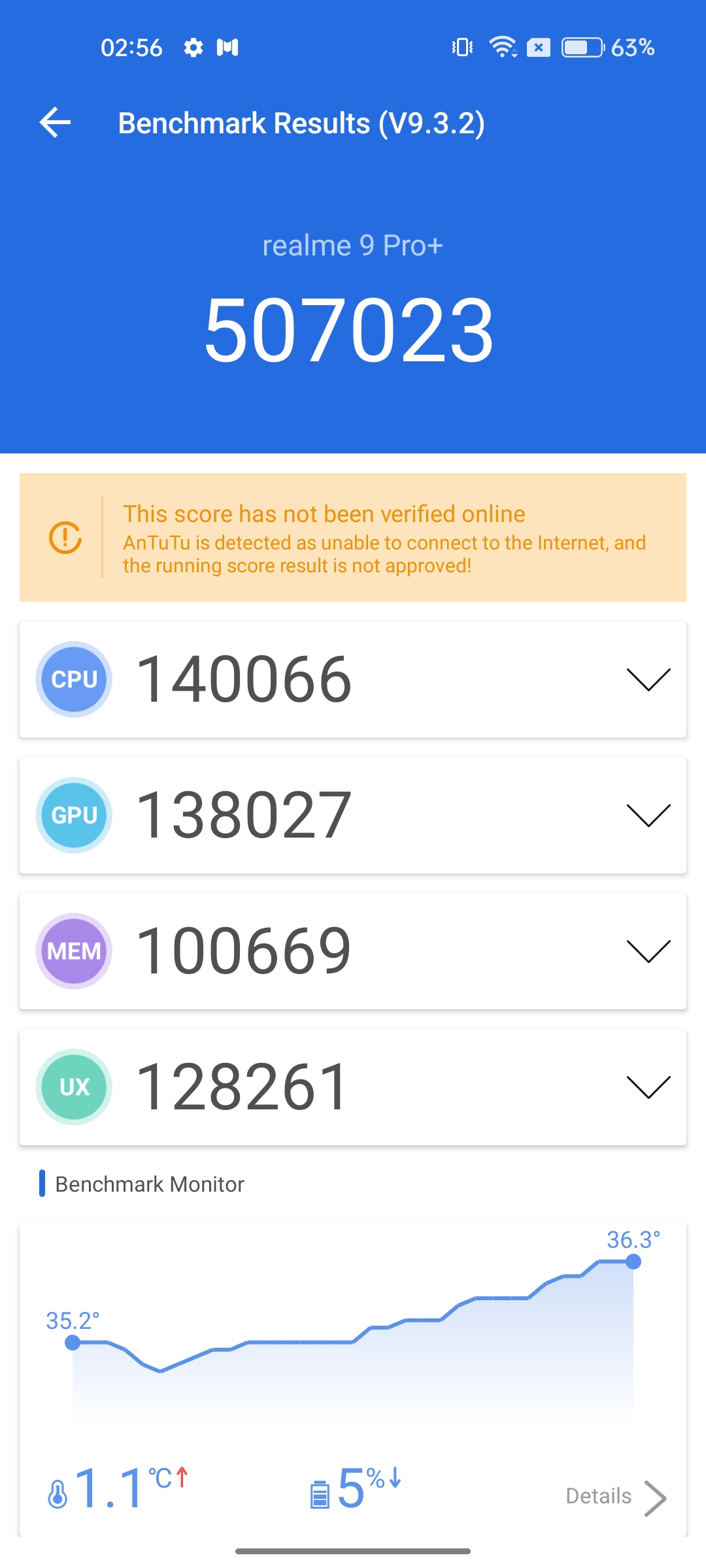 The Realme 9 Pro+ is powered by the Mediatek Dimensity 920 which is based on 6nm technology, an upgrade over last year’s, including the competition Qualcomm Snapdragon 720G SoC. Hence, it directly competes with its rivalry:- Xiaomi Mi11i HyperCharge, this chipset isn’t slouched but it isn’t a flagship killer either. In day-to-day usage, there aren’t stutters while navigating into the UI and the experience was pretty fluid and fast. While pushing the limits, the device heats up little but never feels uncomfortable while using it for prolonged gaming sessions. Coupled with two RAM configurations:- 6GB and 8GB RAM and up to 256GB of UFS 2.2 storage. Yes, A UFS 2.2!