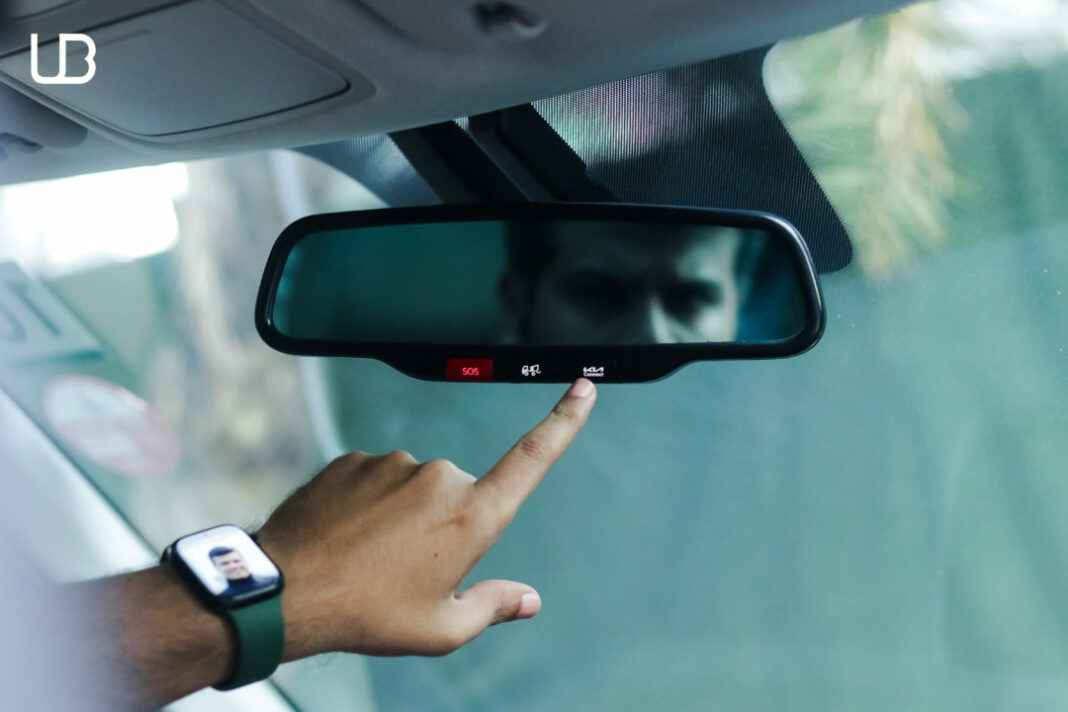 Before we move to the second row to explore the tech, I need to explicitly mention that even the IRVM (Rear-View Mirror) is an advanced piece of tech. It does automatically dim itself and all but also has three buttons for your safety and convenience – SOS, Tow Support and KIA connect.