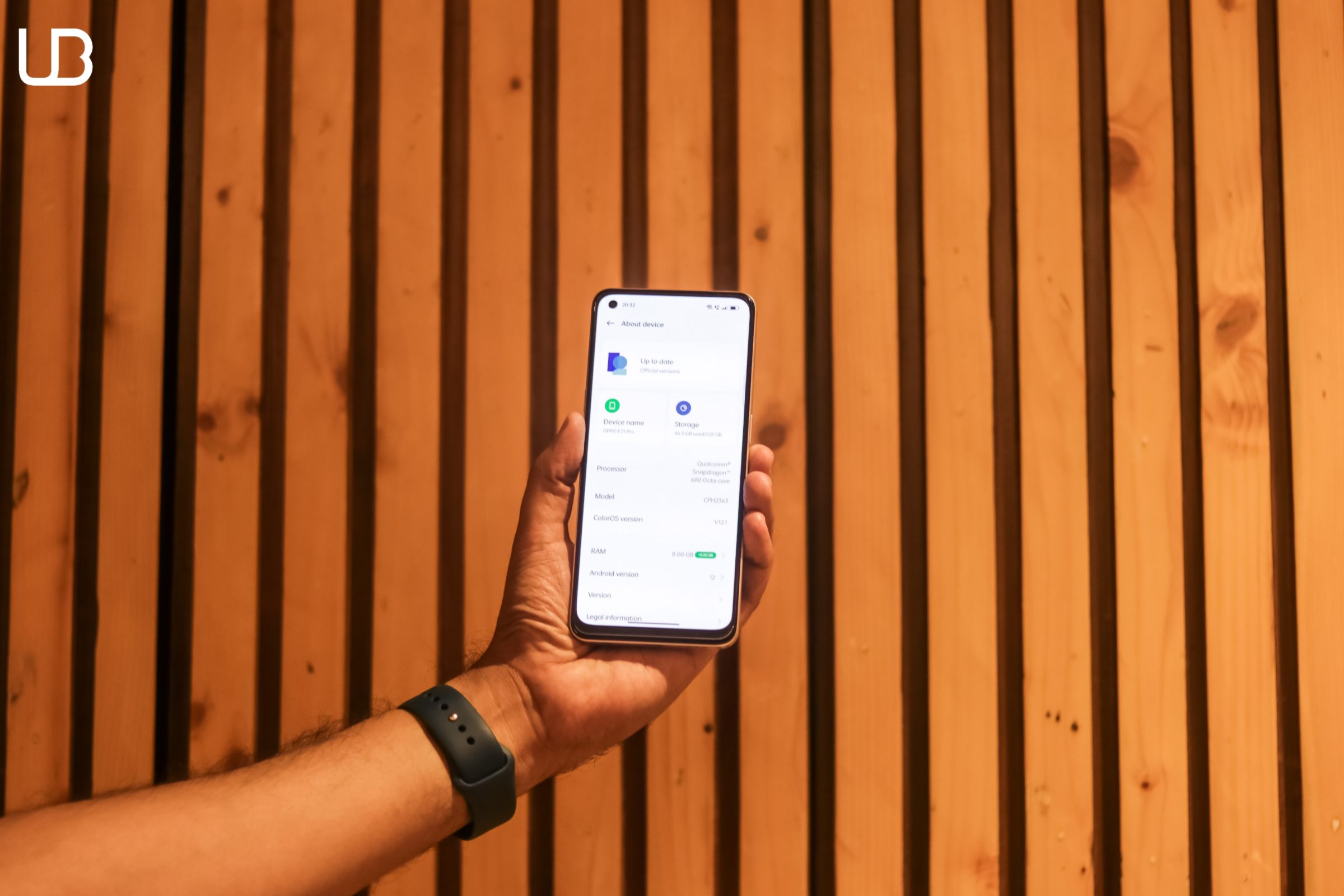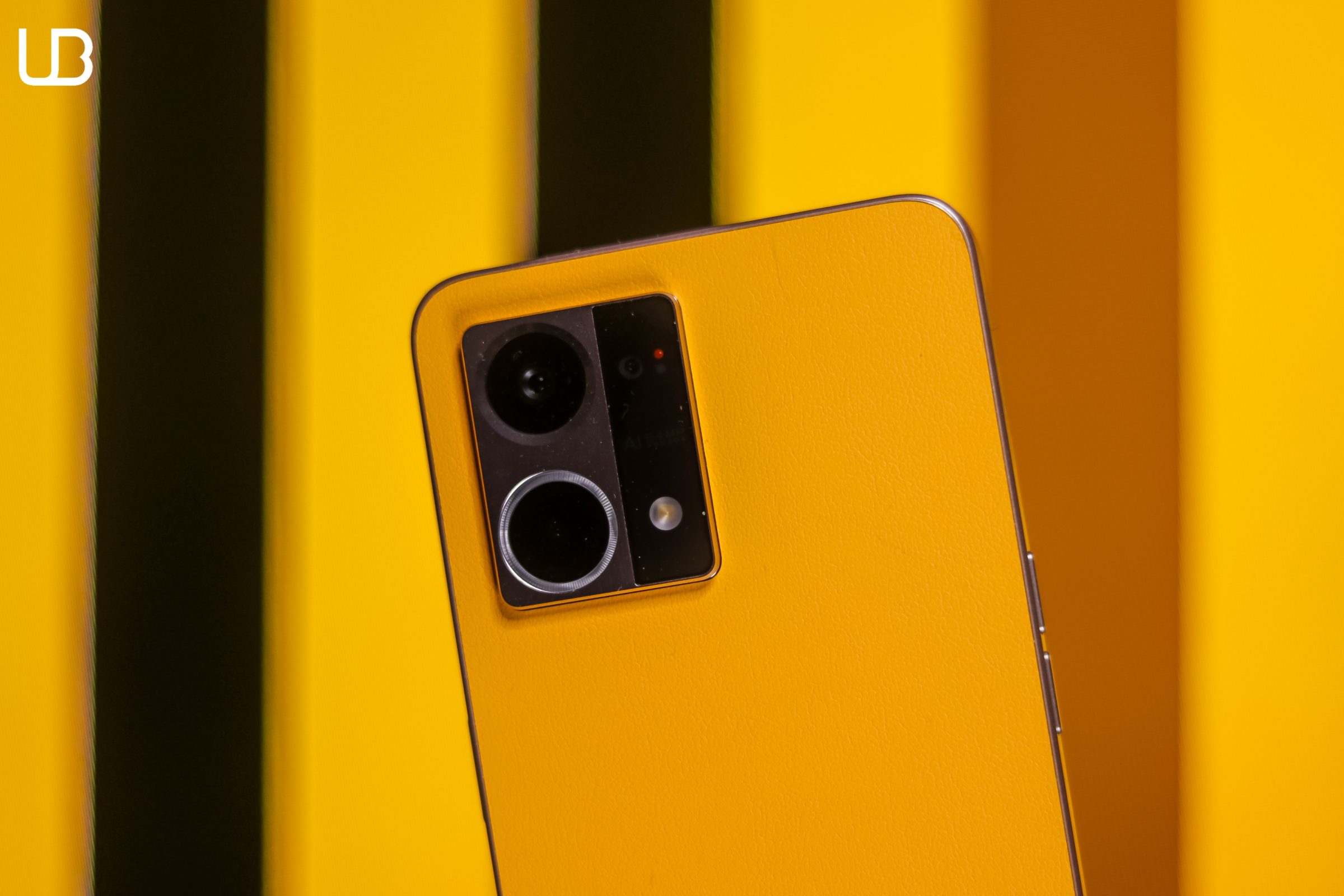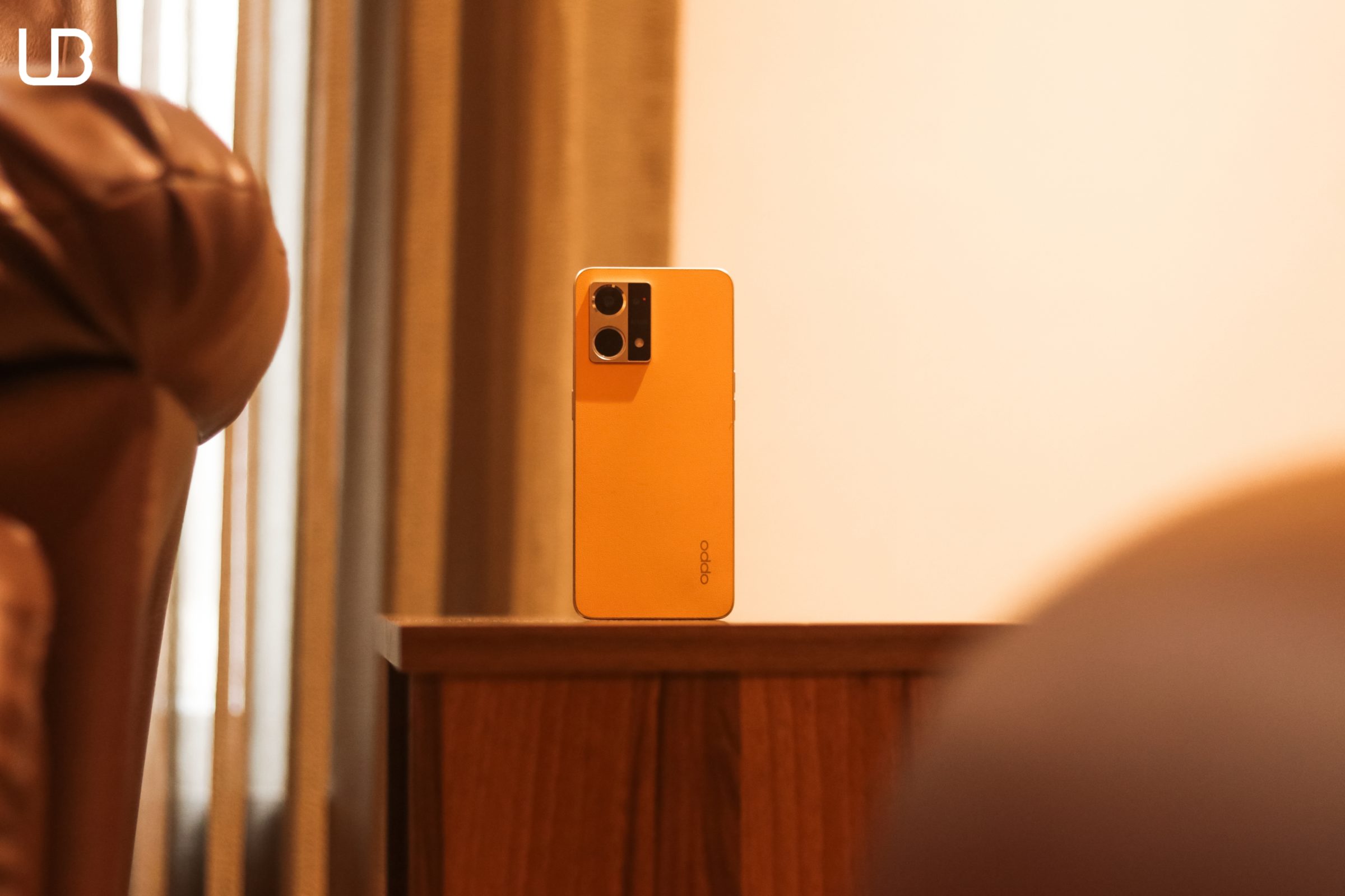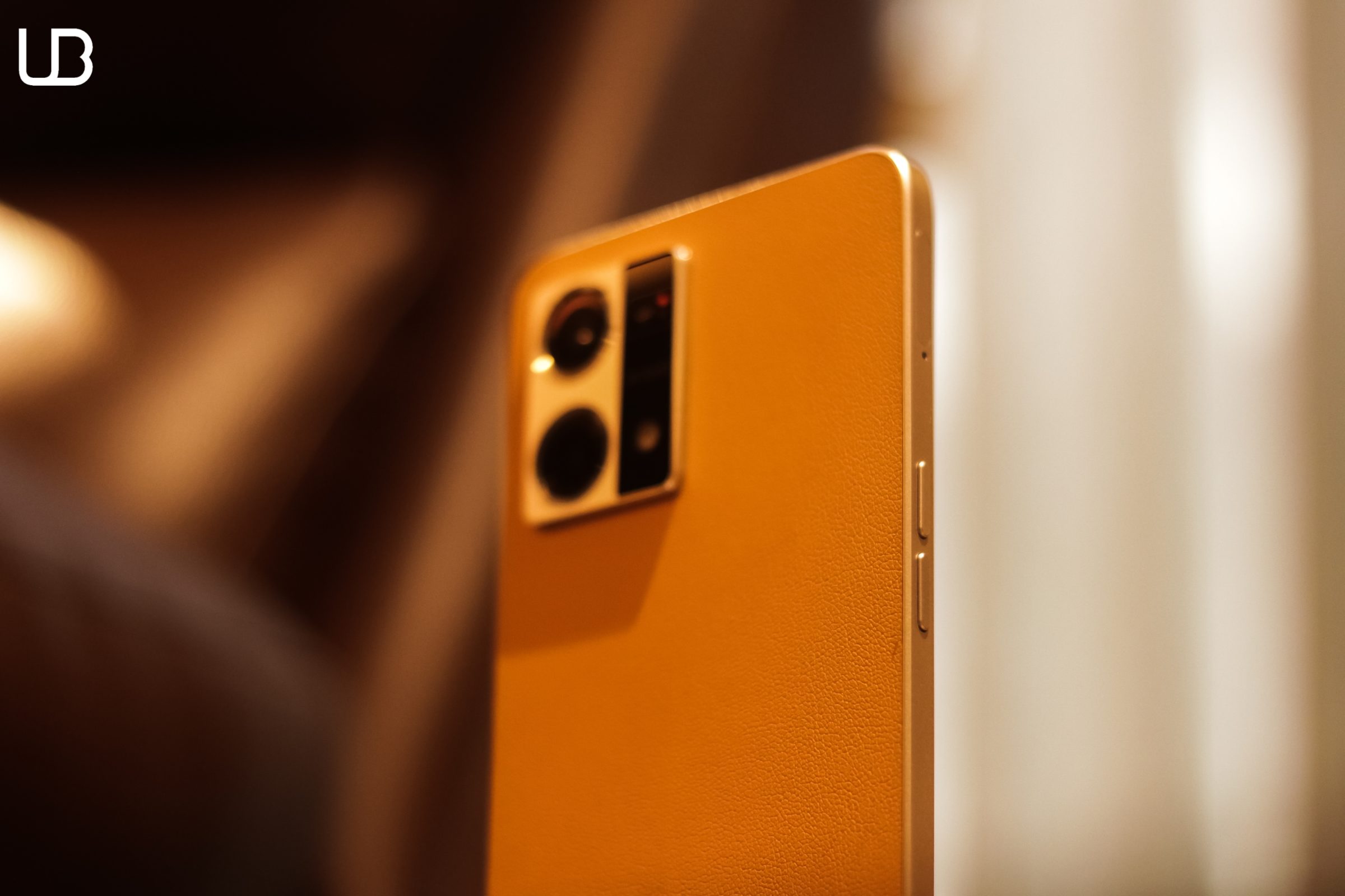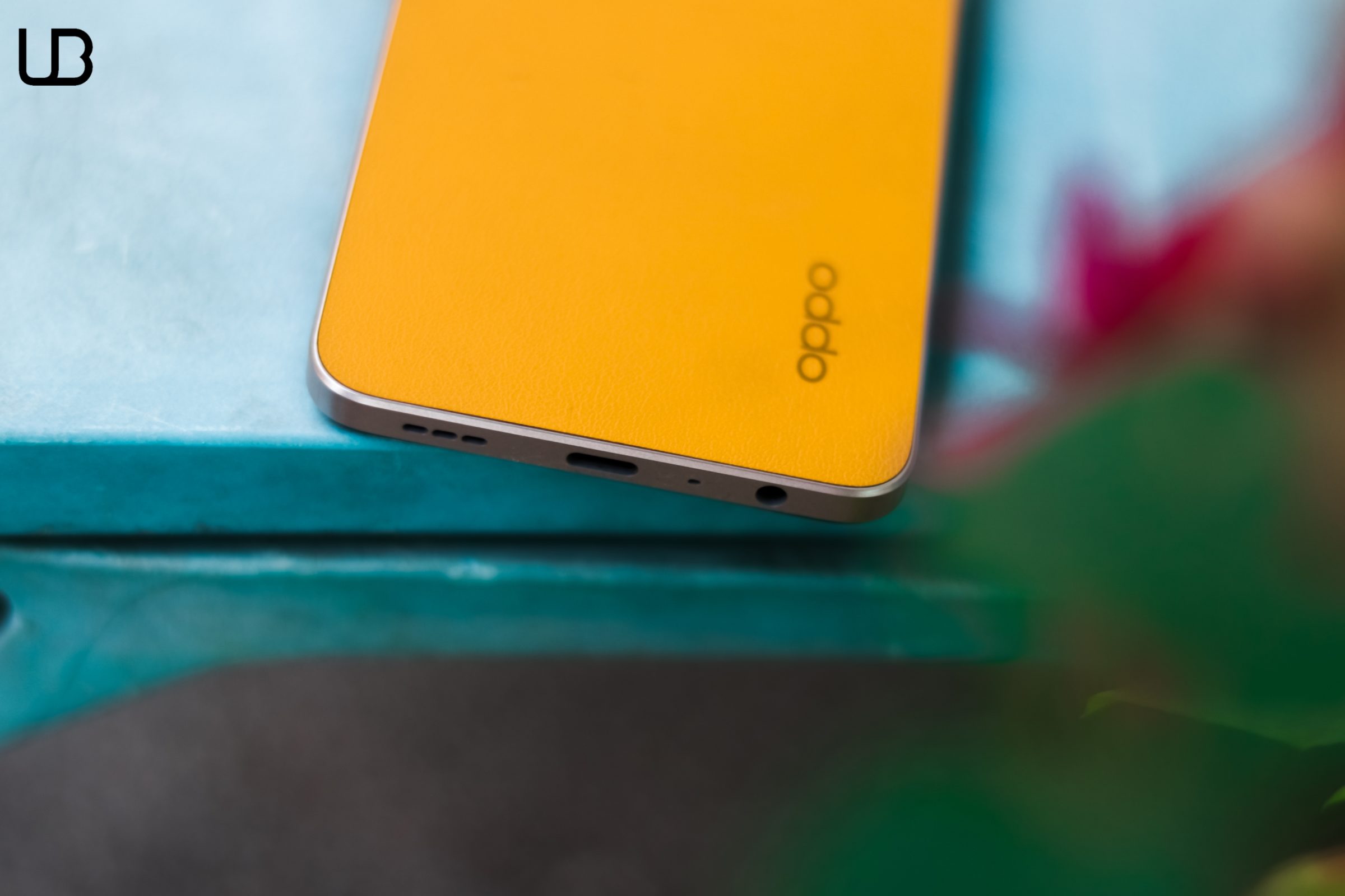 The new Sunset Orange colourway we received for our review, Oppo calls it as industry’s first fibreglass vegan leather back that delivers a faux-leather texture on its back which feels plush. This material helps it to stand tall among its competitors who are still stuck in providing glittery and shimmery back designs. This choice of colour can be subjective as it’s a bit flashy and may vary from person to person. If you’re more into subtle design then there is Cosmic Black colourway which holds a matte finish. Do keep in mind that this fibreglass leatherback is only limited to the Sunset Orange colourway.